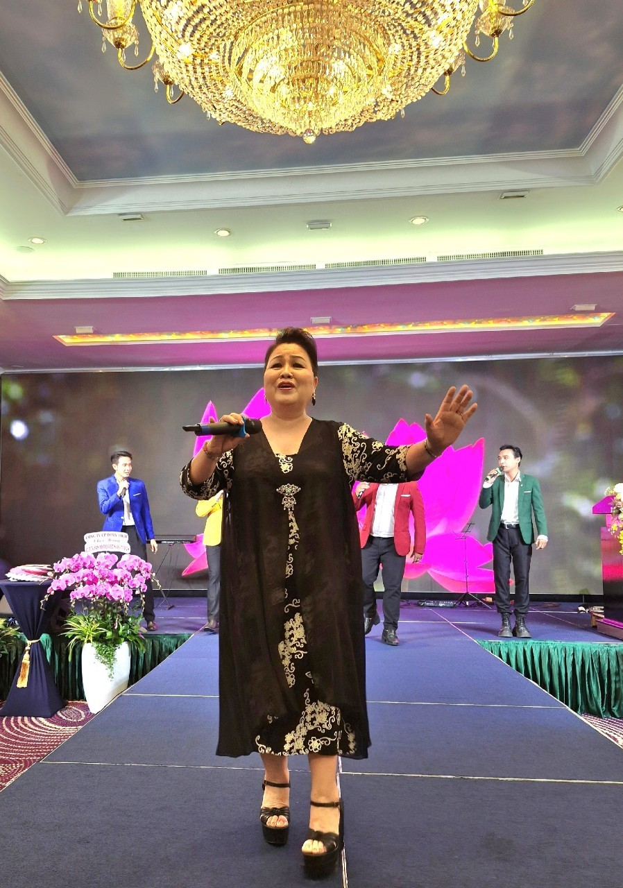 NSUT. Nguyễn Thị Quỳnh Liên, Chủ nhiệm CLB Nữ nghệ sĩ TPHCM – UV BCH Hội Nữ trí thức TPHCM mở màn Chương trình giao lưu văn nghệ với ca khúc Cung đàn mùa xuân, sáng tác của NS. Cao Việt Bách.