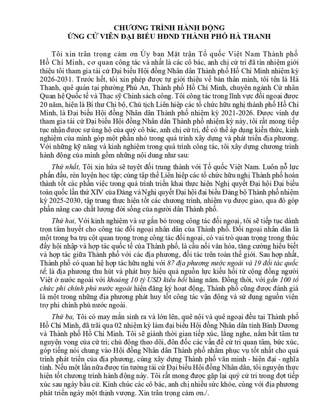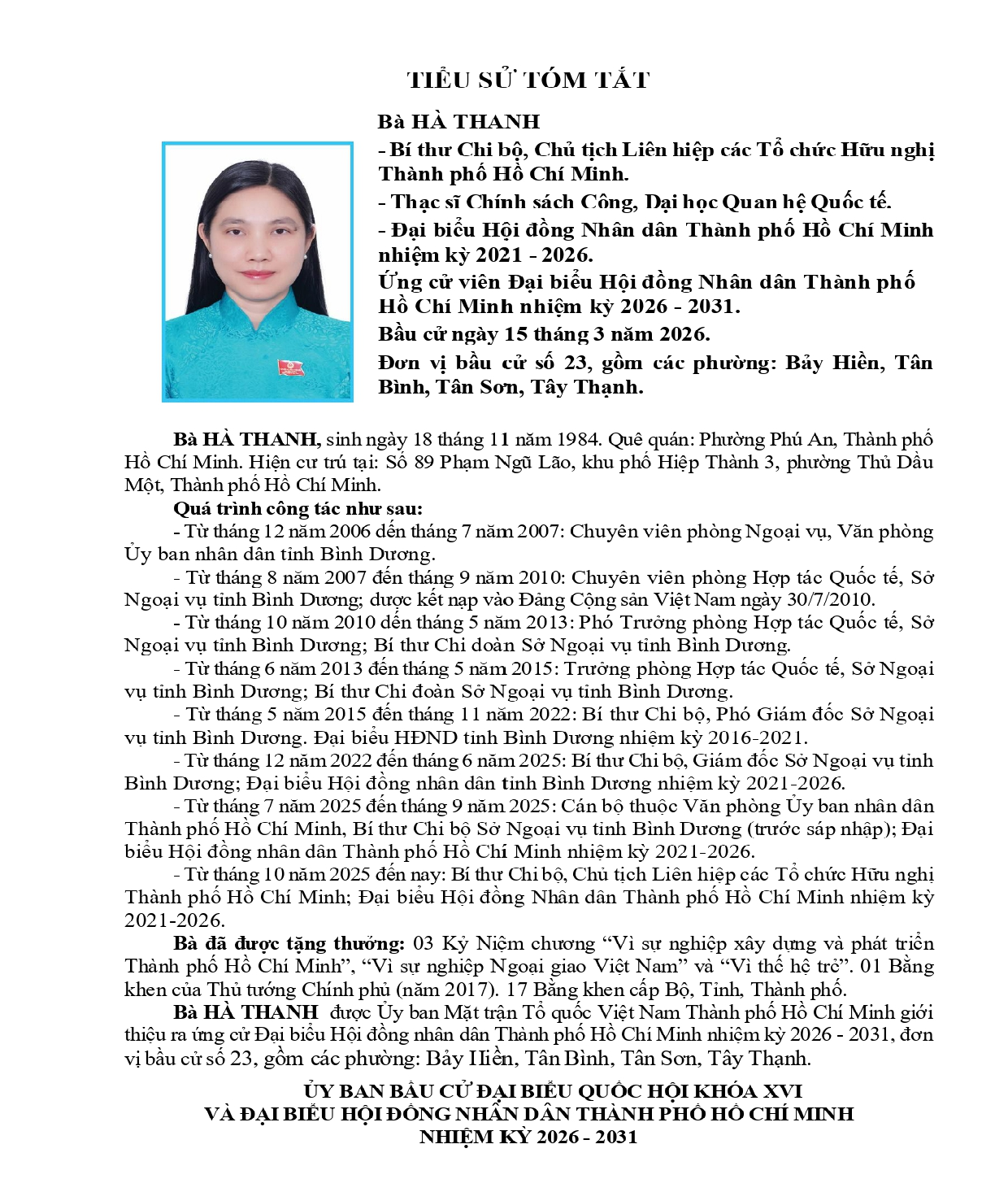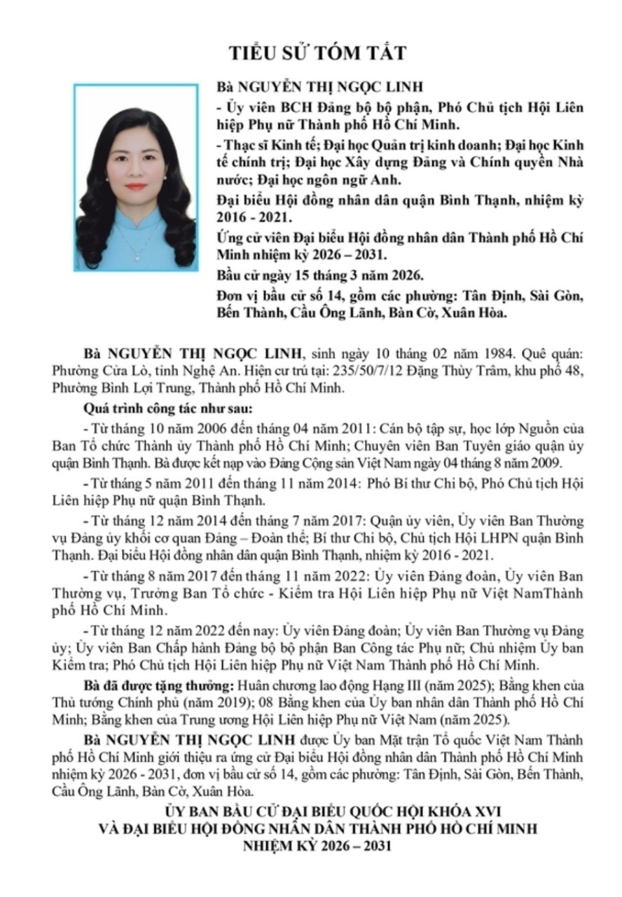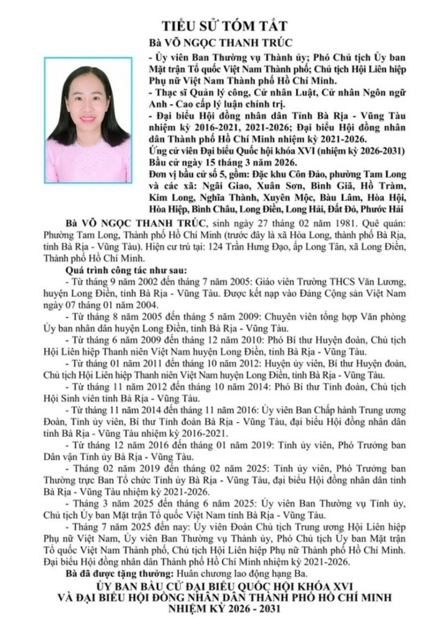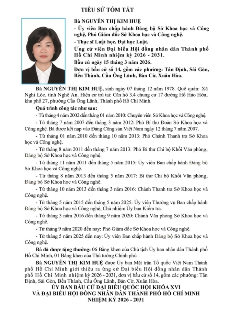 ỨNG CỬ VIÊN ĐẠI BIỂU HỘI ĐỒNG NHÂN DÂN TPHCM