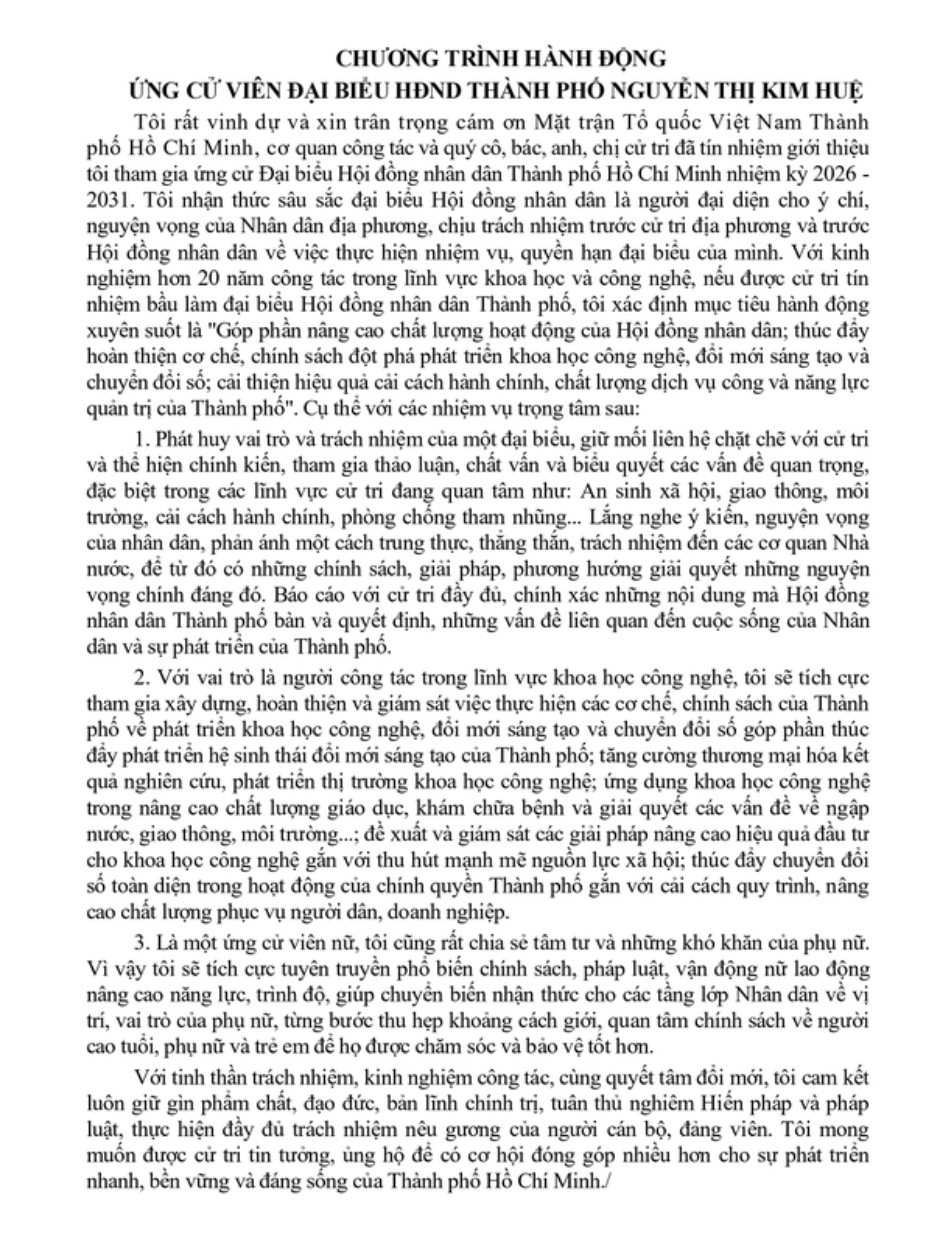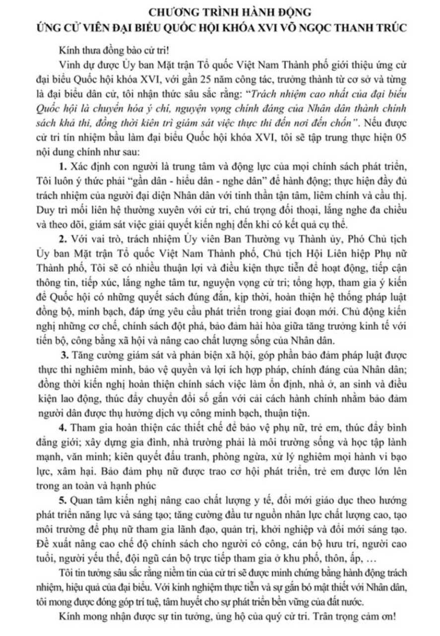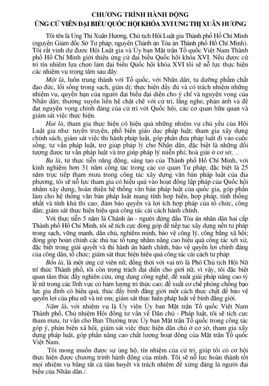 Chương trình hành động của 6 hội viên Hội Nữ trí thức TPHCM là ứng cử viên Đại biểu Quốc hội Khóa XVI & Hội đồng Nhân dân TPHCM Khóa XI