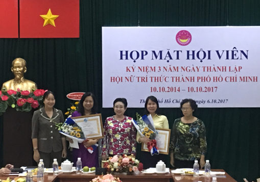 Đồng thời nhân các sự kiện quan trọng, Hội cũng kịp thời tặng hoa chúc mừng các hội viên có những nỗ lực phấn đấu trong công tác chuyên môn, nghiên cứu khoa học. Đơn cử như dịp kỷ niệm 3 năm thành lập Hội (tháng 10/2017) Hội đã trao Bằng khen của Hội LH Phụ nữ Việt Nam và tặng hoa chúc mừng 4 hội viên được phong hàm phó giáo sư và 2 hội viên bảo vệ thành công luận án tiến sĩ trong nước, đó là các hội viên: