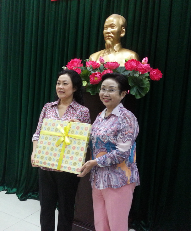 Chủ tịch Hội thay mặt Ban Chấp hành tặng quà chúc mừng hội viên Đinh Thị Bạch Mai, nguyên Chủ tịch Hội LH Phụ nữ TPHCM hoàn thành nhiệm vụ và nhận quyết định nghỉ hưu từ 01/12/2015.