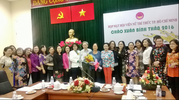Nhớ về lần họp mặt hội viên đầu tiên mừng xuân Bính Thân 2016 (ngày 18/2) là nhớ kỷ niệm PGS.TS. Trương Thị Hiền thay mặt hội viên tặng bó hoa tươi thắm rất đẹp chúc mừng TS. Thái Thị Ngọc Dư, UV BCH kiêm Chi hội trưởng Chi Hội Nữ trí thức Trường Đại học Hoa Sen bước sang tuổi 70.