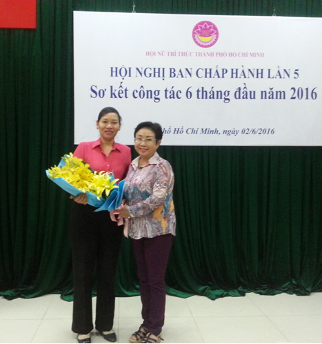 Chủ tịch Hội thay mặt BCH tặng hoa chúc mừng ThS. Trần Thị Phương Hoa, Phó Chủ tịch Hội LH Phụ nữ TPHCM - Phó Chủ tịch Hội Nữ trí thức TPHCM vừa đắc cử ĐB Hội đồng Nhân dân TP nhiệm kỳ 2016-2021.