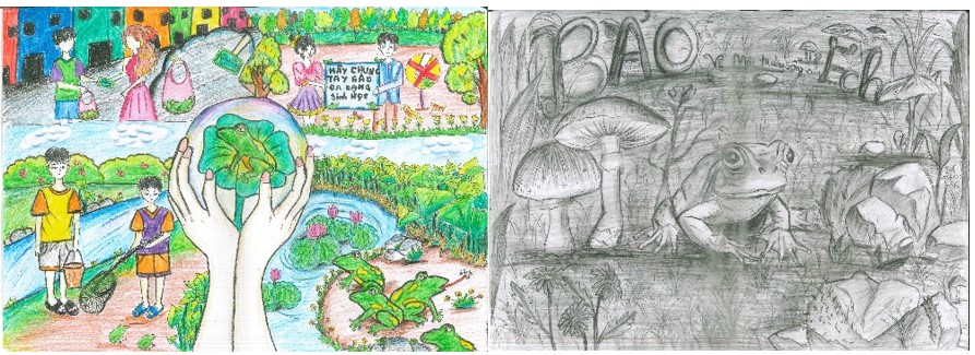 Một số tranh vẽ của các em học sinh trong hoạt động tuyên truyền bảo vệ đa dạng sinh học